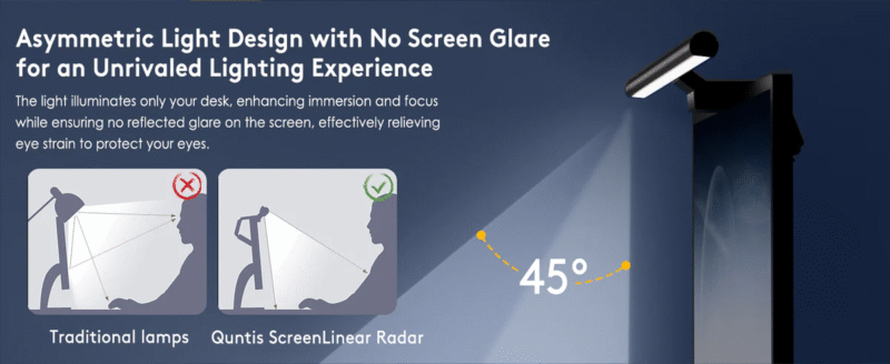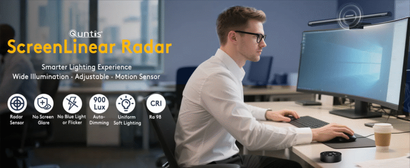 Quntis ScreenLinear Radar Pro+は、「デスクをスッキリ保ちながら、目に優しい照明を実現したい」という人にぴったりのモニターライトです。