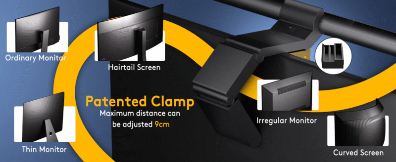 普通のデスクライトと違って、モニター上に設置できるため、省スペースで画面への反射を防ぎつつ、目に優しい照明を実現してくれます。
